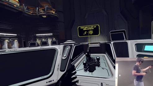 由于头盔的视场角有限,交互信息的位置要么会挡住用户观察环境,要么会很难观察到。这也是目前VR交互设计所面临的问题。