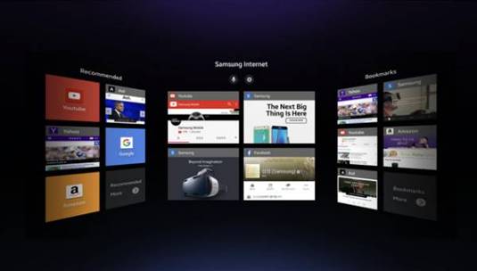 1、举个例子,下图是三星GearVR的界面,很像我们平时使用的浏览器的界面,以图片和窗口的形式为主让用户方便读取。