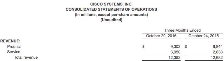 当地时间11月16日,网络解决方案供应商思科(NASDAQ: CSCO)发布截止至10月29日的2017财年第一季度财报。数据显示,包括SP VIdeo CPE业务的营收为124亿美元,比去年同期的123亿美元增长1%。不包括SP VIdeo CPE业务的营收为124亿美元,比去年同期的127亿美元下降3%。