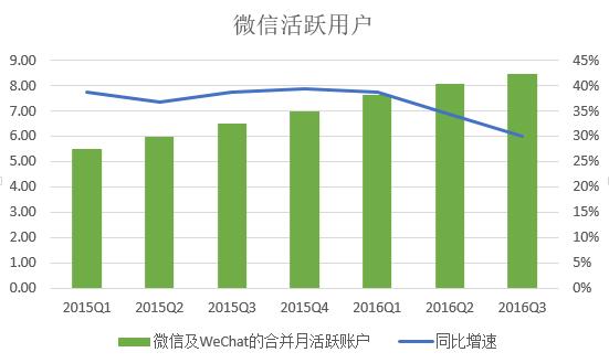 微信活跃用户达到8.46亿,比去年同期增长30%。