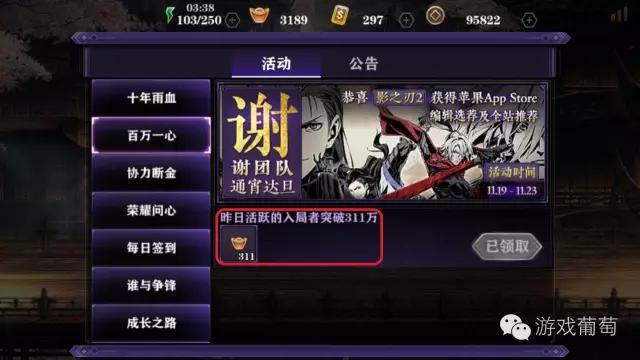 今天《影之刃2》在游戏内公布昨日活跃玩家已经达到了311万,对于一款重视竞技的游戏来说,无疑是开了个好头。但是,至少在《影之刃2》身上,核心用户和大众用户的取舍仍然是横亘在灵游坊心头的难关。