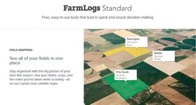 2012年成立的FarmLogs,让农场主可以通过它计划、管理、监测、分析农作物生产过程,通过FarmLogs农场地图信息展示,可以掌握不同作物农作时间、获得每小时的天气信息,还可以及时了解各种农产品的市场价格动态。