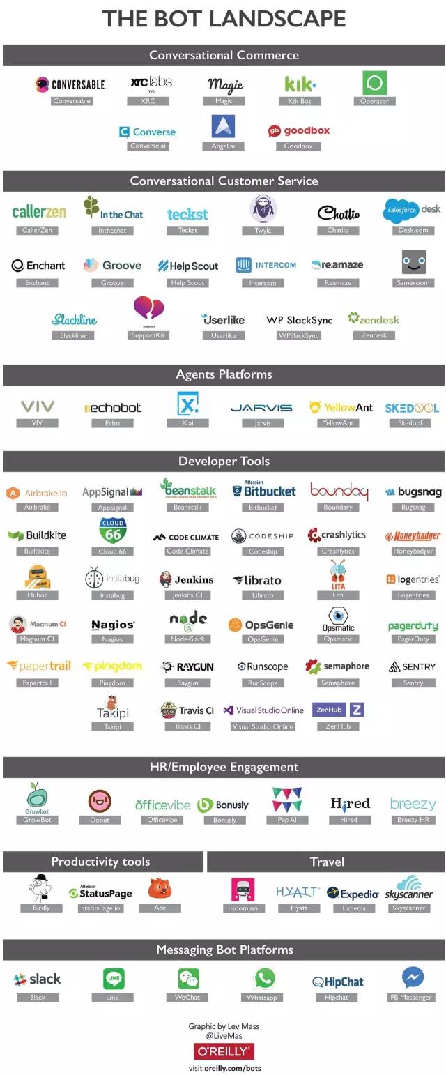 打造我们的 Bots 未来的第一步是理解今日的发展格局。下面是 O'Reilly 制作的一张可视化图: