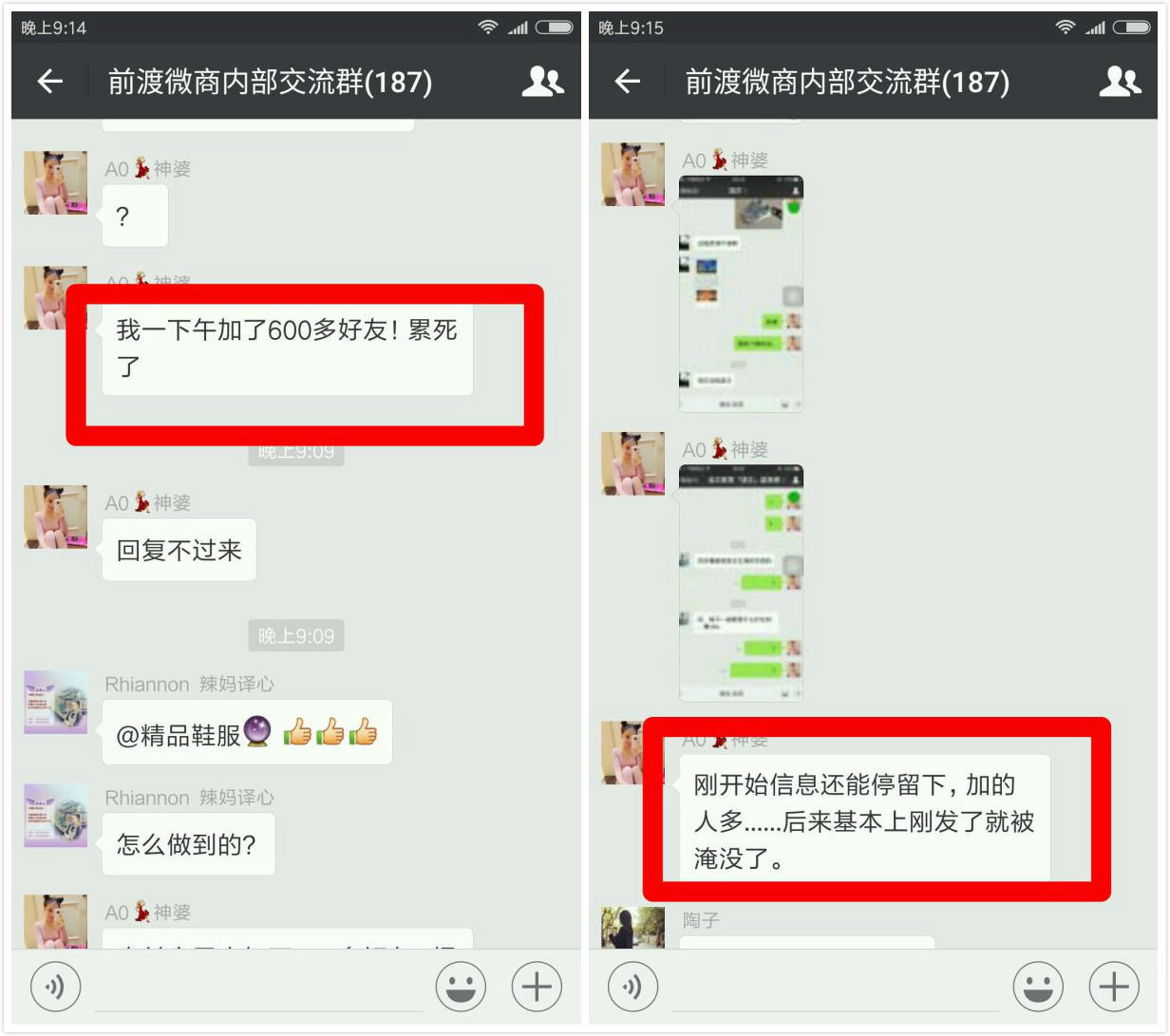 聪明的微商,总会嗅觉灵敏得识别每一个流量红利的机会,并且很勤奋得摸索规则,然后加好友,开展她们的事业。有些办法可能会很土,但对于没有推广资源的她们来说,露个胸发个自拍可能也不算什么,能多加几个好友,有人夸自己美,还能有土豪打赏,何乐而不为呢。