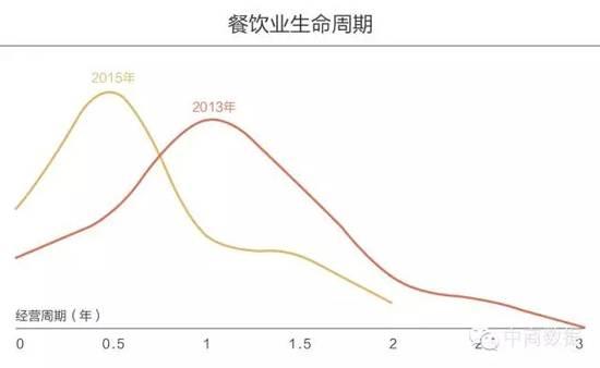 事实是,2015年1~10月,中商数据曾经在上海数百个餐饮商家中做过一次大范围调查,结果发现,传统餐饮品牌的平均生命周期已经从2013年的2.9年缩短到了2.1年,经营峰值也从一年缩短至6个月。