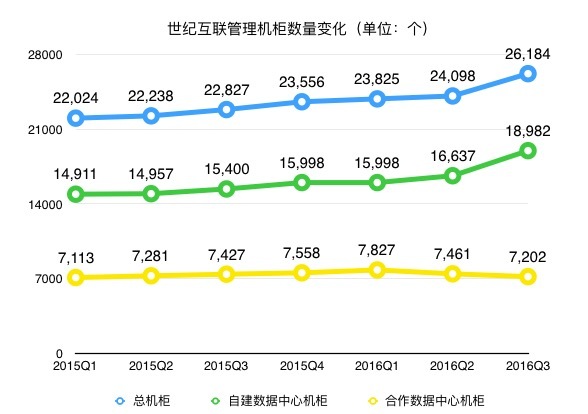 我们对公司核心业务在2016年第三季度中继续实现了增长感到非常高兴。我们不仅在自建数据中心里新增了2300个机柜,其中包括在北京最新开始的一座数据中心;而且尽管新增加了数据中心,我们的利用率还是提高至77.9%。此外,我们的云业务继续表现良好,在现有的微软云业务的推动之下进一步获得了动能。