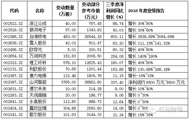 统计11月以来高管增持金额较高的公司,累计增持超过百万元的32家公司中,今年前三个季度,26家净利润同比以增长收官,占比81.25%。其中,如台海核电、卫宁健康、山河智能、万润科技、理工环科等9家公司今年前三个季度净利润的同比均实现了翻倍增长。而结合目前提前公布的年报业绩预告看,已公布预告的16家公司,今年全年全部预喜,预增幅度最高的台海核电,净利润相比2015年度预增高达2629.69%~3084.64%。公告表示,与去年比,公司本期产品销售大幅增加(含预计签订项目),并且增加了核级材料销售及合并报表范围发生了变化,实现业绩大幅增长。而由此可见,业绩预期前景是否向好是公司高管十分关注的。