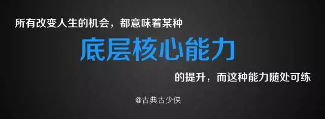 很难想象一个自我管理不好、不懂得说话、缺乏基础商务能力的人,会在下班以后突然变成一个自律、八面玲珑又懂得经营自己的人。因为这些也都是“底层核心能力”,它们在支持你的人生改变。