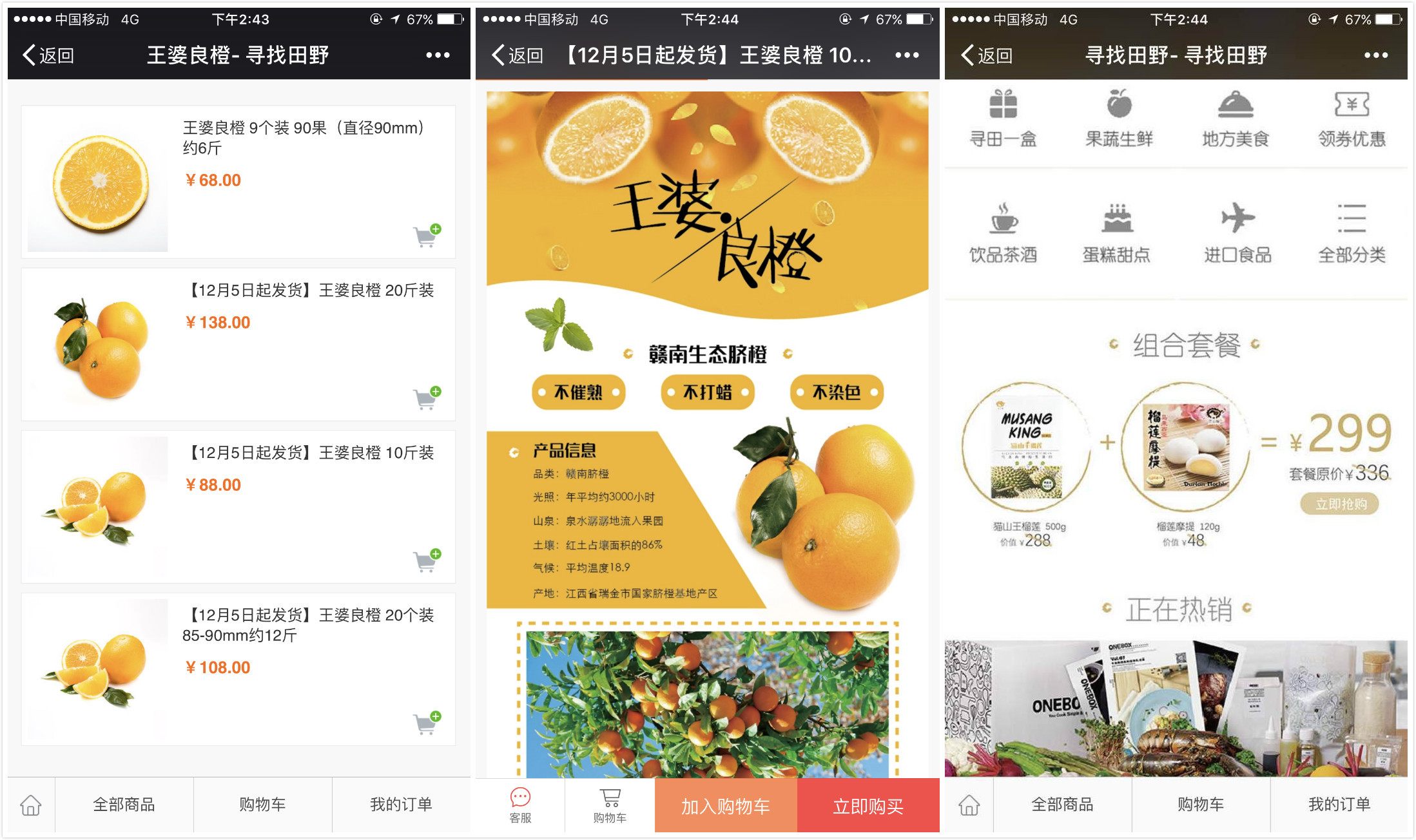 刚起步时,“寻找田野”想对每一个产品都精细化运作。因此,平台上的 SKU 总数非常少,只有粽子、月饼、橙子等为数不多的几样。但现在团队调整了战略思路,截至目前,“寻找田野”上已有 5、60 样产品。