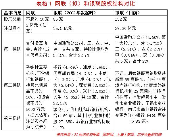 从银联发起时的股权分配来看,基本是在考虑机构属性的情况下与市场地位高度挂钩,五大行持股比例最高,全国股份制银行位居第二梯队,而城商行和信用社及其他非银行机构位居第三梯队,各占三分之一左右。