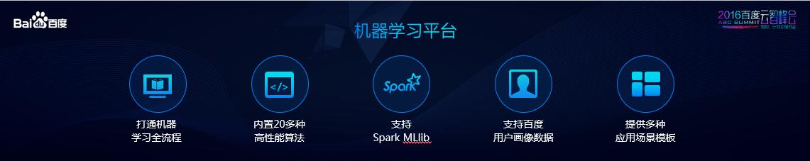 此外,这个平台内置了二十多种常用的机器学习算法,支持业界标准Spark MLlib,同时也对应了百度内部的海量数据和常用模板。