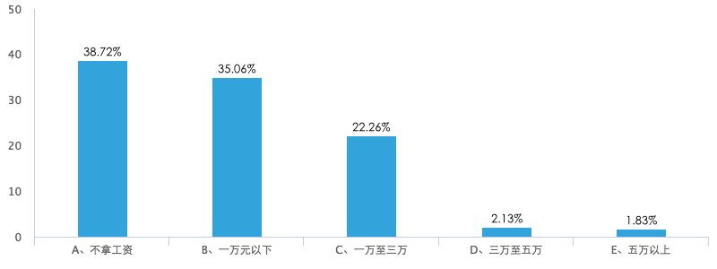 为了尽可能地缩减成本,创业者们首先想到的是,先缩减自己的薪资。超过60%的创业者在接受调查时表示,自己拿的工资在一万元以下,甚至有38.72%的人表示自己一分钱工资也不拿。