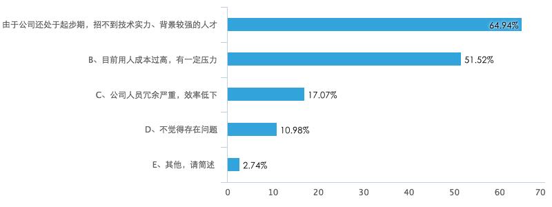 但矛盾的是,即便如此,依然有64.94%的创业者还在为招不到有技术实力、背景较强的人才发愁,45.73%的创业者为招不到强有力的合伙人而发愁。