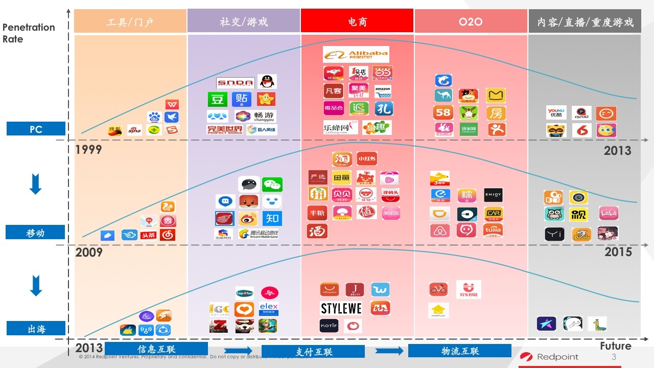 工具的本质是硬件的增强,为完善系统、改善用户体验而出现。当整个用户体验比较好的时候,利用游戏、社交形成用户黏性,来完成接下来的支付互联。基础建设、信息互联、支付互联都完成后,在工具及社交/游戏之后,一定会出现的产品形态就是电商。