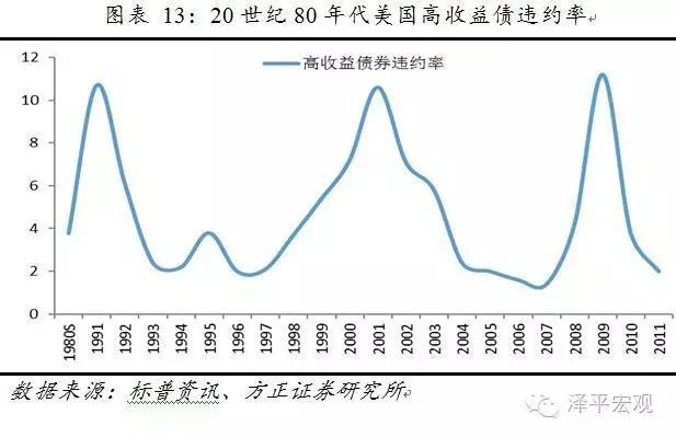 高收益债在70-80年代的盛行也催生了资产泡沫。80年代末,关于高收益债的负面新闻开始鹊起,高收益债市场受到情绪、监管、信贷紧缩等一系列因素影响,其市场承受了巨大的抛压,债券违约率迅速攀升。整个80年代,高收益债的平均违约率仅仅不到4%,到了1991年,高收益债的违约率蹿升至11%左右的空前高位。