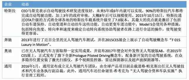 3)快速的跟随者:这部分的汽车制造商具有巨大的技术或商业的基础,他们非常可能投资于自动驾驶的研发项目,等待核心技术的成本下降。