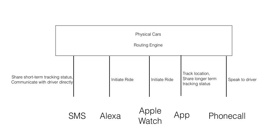 按需界面领域的新型公司将创造巨大价值,开发人员已经对主要通过 API 进行交互的公司有所了解,这些 API 可能是最简单的用户界面。消费者也在学习,直觉上,不少人慢慢理解 Uber 不只是一个应用程序,它是一个概念,路上的汽车通过“大脑”连接起来,在用户有需求的时候立即到达。Uber 可以在不同的界面之间流畅工作:通过用户的手机收集位置数据;然后用智能手表或 Alexa 叫车;在 app 上显示司机实时的位置;发送司机达到的短信;并为用户提供与司机通话机会。每一个环节都是获得或共享数据最流畅的方式。