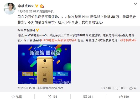 魅族 Pro 6 Plus发布之后,魅族科技副总裁李楠在知乎上曾表示过对该款机型的销量预期“甚至还不如魅蓝X”,表示这款机型并非商业之作,但今天发布的魅蓝Note系列,则一直是销量担当。正如36氪此前报道,魅蓝Note 3推出之时可称为魅族千元机的标杆之作,在今年京东618之日成为了单品销量冠军;2015年推出的Note 2也取得过类似的成绩。因为对销量预计不足,魅蓝Note 3还因缺货而备受用户吐槽,因此,李楠表示本次魅蓝Note 5的全渠道备货量超过30万台,以防止出现年中的尴尬。