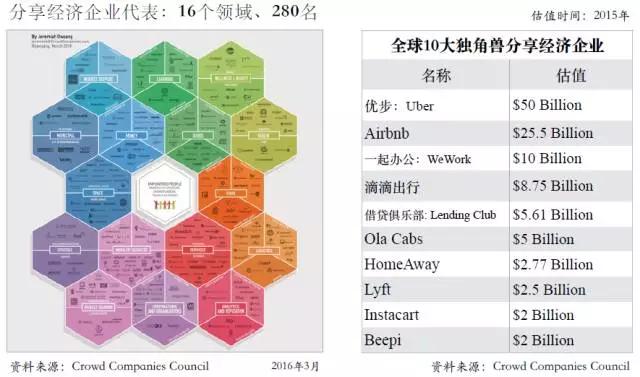 数据显示,目前来说,全球共享经济的企业代表有280个,分别引领16个领域。十大独角兽企业中Uber列第一,Airbnb次之。如果你今天还想在这16个领域做大做强,已经不大有机会了。