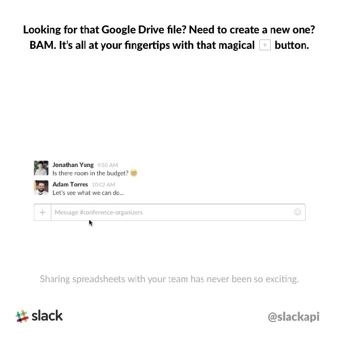 据 Slack 所述, Google云端硬盘是最早的Slack集成之一,并且仍然是最受欢迎的产品之一,Google Drive文件在每个工作日大约导入60,000次。 换句话说,这意味着每1.4秒共享一个文件。
