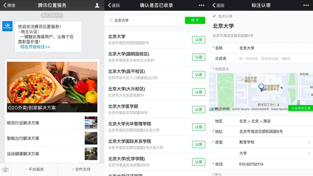 此外,腾讯位置服务还使用了“地主认证”,这其实是鼓励人们用众包的方式更新POI位置,从而解决小微商户店址变更快、不易纠错改错等特点,而这一方面能够帮助腾讯地图实现及时更新,另一方面,也是产生了腾讯位置服务的新调用。
