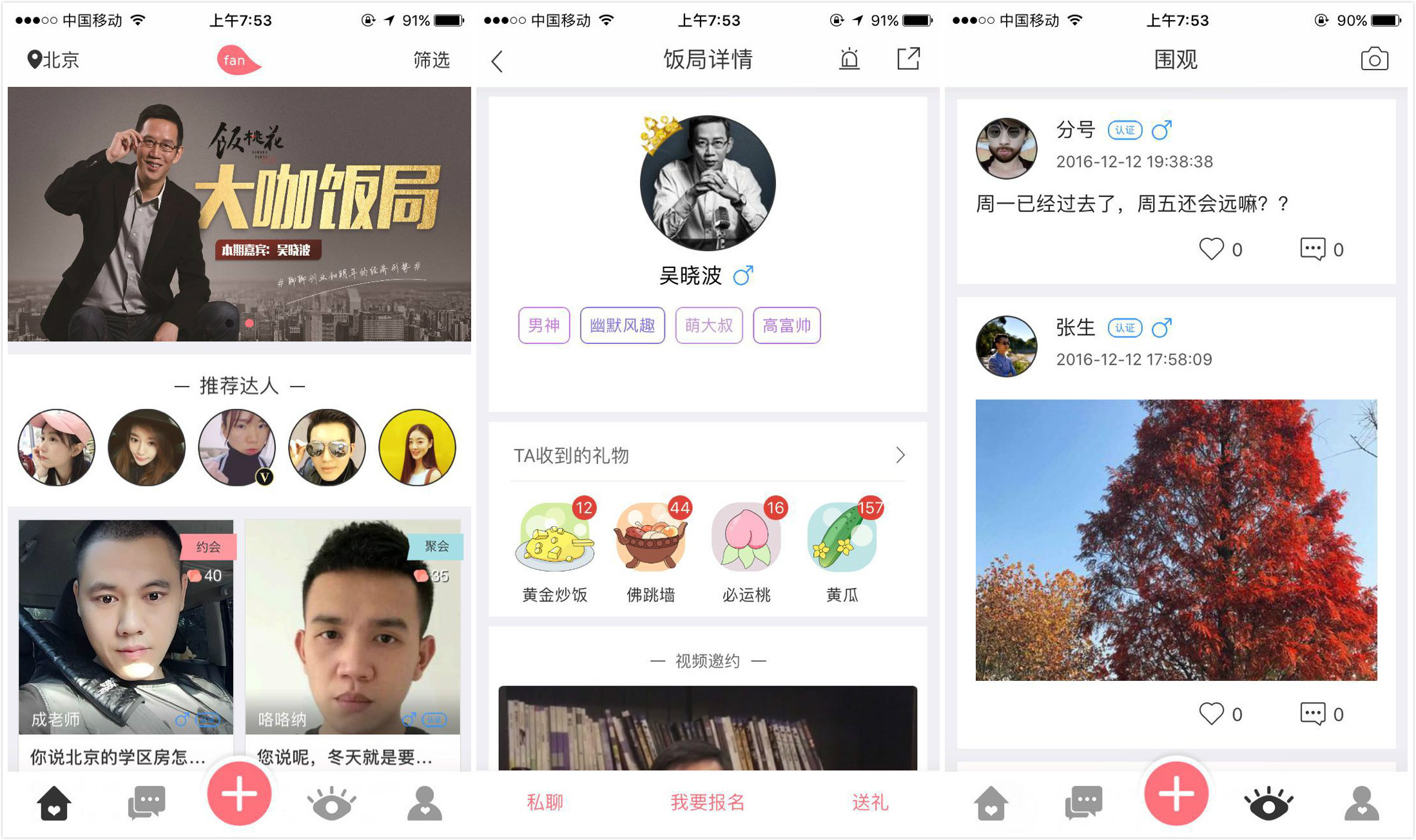 撕掉约炮标签,饭桃花想要解决获取女性用户面临的阻力:安全性、用户质量和效率问题。发起饭局的用户必须是认证用户,认证用户必须要上传头像和视频,后台审核通过后才能发起饭局。发起饭局需要信用担保,且用户之间可以互相点评。饭局形式可以是一对一、也可以是多人聚会。在匹配效率上计划做更多的细分,比如用主题来界定想要约什么样的人,并根据不同的身份标签来匹配和推送。