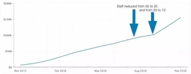 事实很快让我们清楚地认识到,在两个地方建立销售团队是非常不明智的。于是,我们关闭了北卡的办公室。12 周内,我们因此花出去 50 万美金。