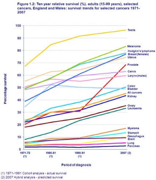 英格兰和威尔士:1971-2007年部分癌症存活率趋势