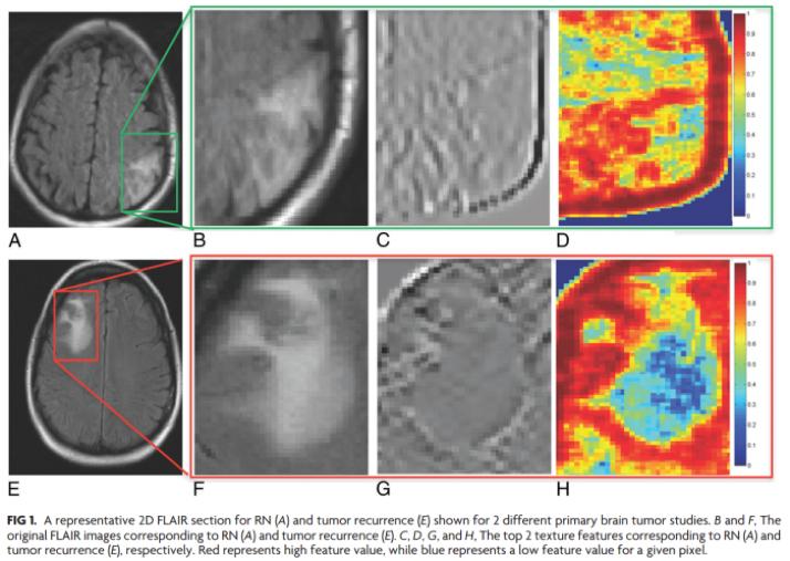 因为发表在美国神经放射学杂志(AJNR)上的一篇关于脑肿瘤的论文(同样很好、重要的论文)并没有使用深度学习。这在放射学文献中是非常常见的,因为从2010年或者2011年开始,一些主要的论文表明旧式的图像分析可以做一些有趣的事情,例如从医学图像中鉴定出的癌症病例中的肿瘤亚型。