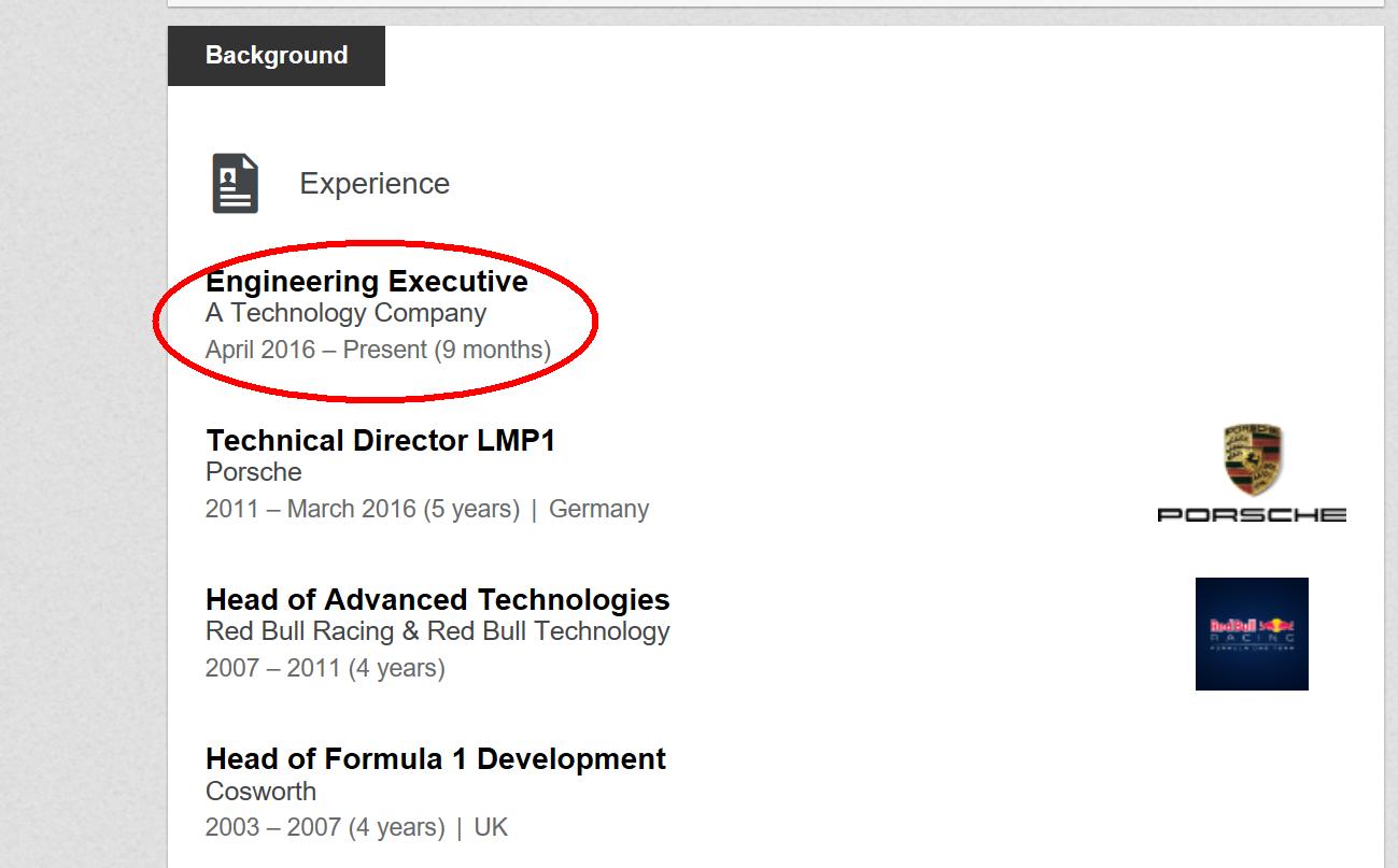 而Hitzinger在LinkedIn上的资料也显示,他在今年3月就已经从保时捷离职,并于4月加入了“一家科技公司”,但这家公司的名字却没有列出。