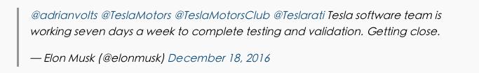 特斯拉Autopilot 8.1版本将于近期推送,Elon Musk称软件小组正在进行最后测试