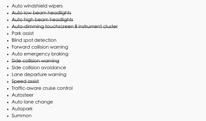 下面,不如我们拉个列表看看,哪些功能在Autopilot 1上有,但在Autopilot 2.0上却没有的。上周末刚推送更新的功能已经划掉了。