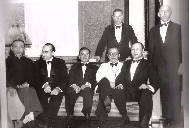 ▲ 上海滩闻人的聚会丨前排自左至右为杜月笙、外商鲍氏、外交家蒋廷、上海市长吴铁城、上海市保安处处长杨虎