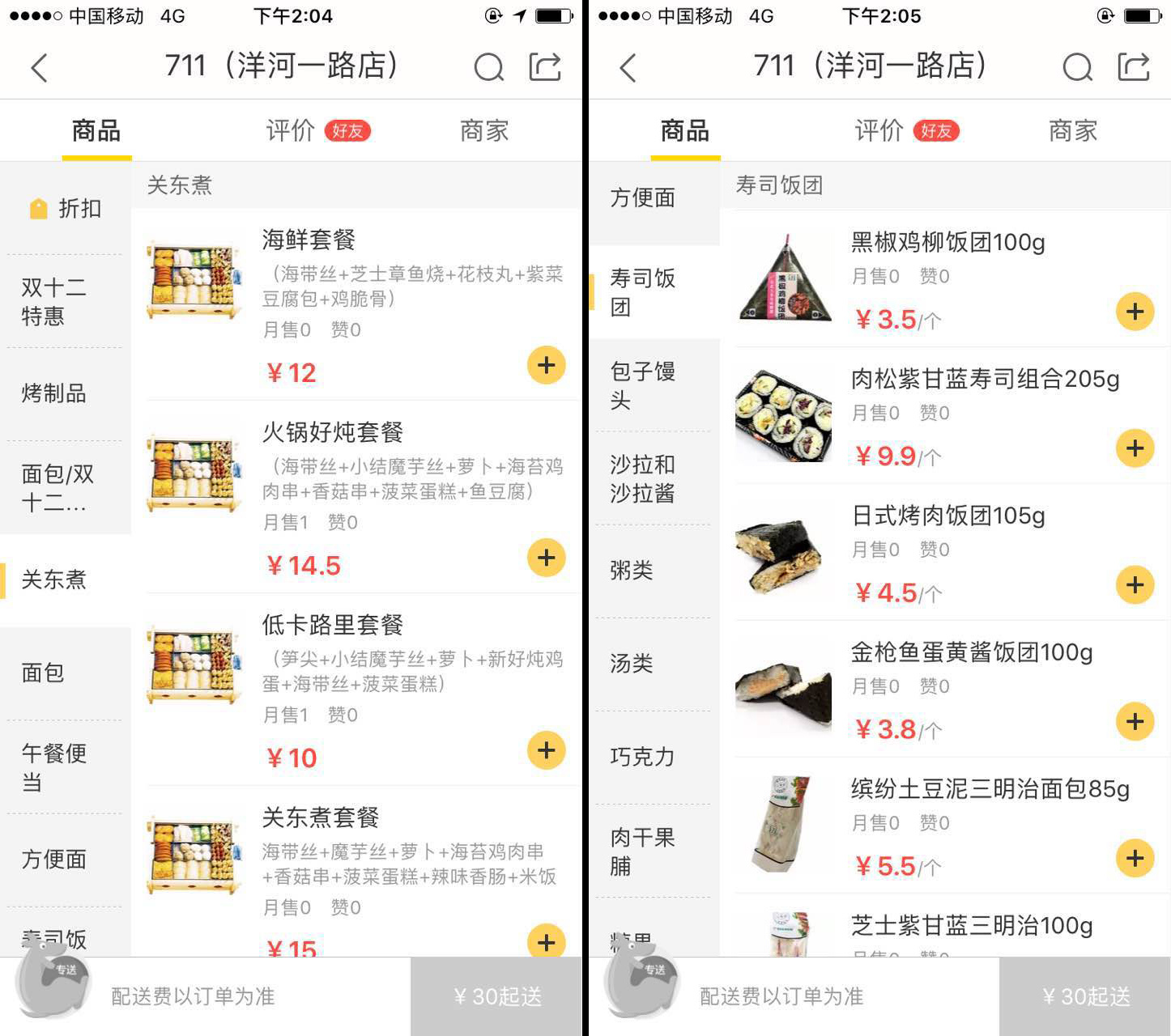 据36氪了解,这样的门店在重庆有32家。以毗邻最大商圈观音桥的江北洋河一路店为例,美团外卖上可供应烤制品、关东煮、面包、午餐便当、方便面、寿司饭团、包子饭团等14种类别的560多种sku——几乎把整间店都搬了上去。