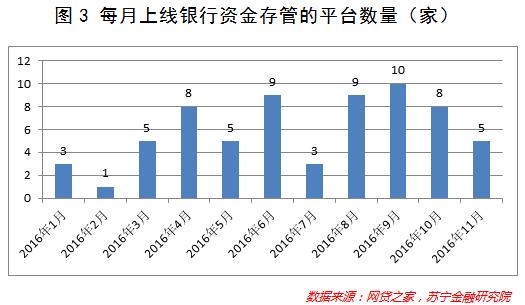 从今年以来上线资金存管的平台数据来看,8月份和9月份出现了银行资金存管上线的小高潮,之后上线数量逐步回落,而距离网贷新规的过渡期却越来越近,真是令人看着着急。