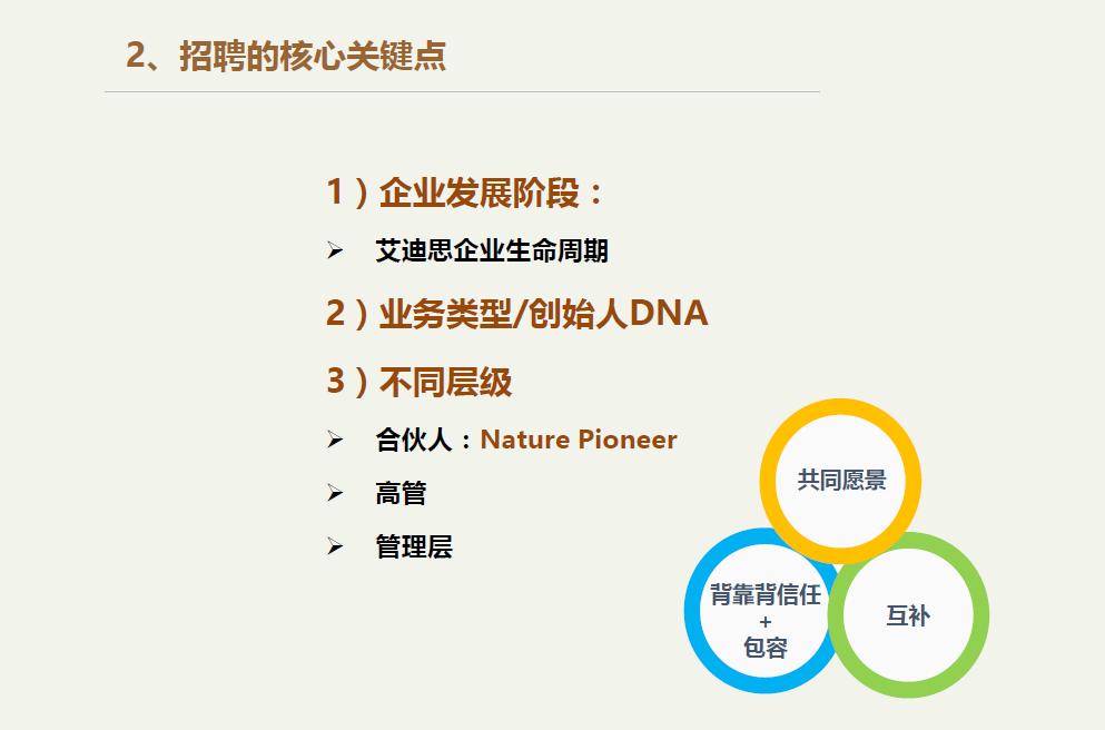 我们把这个“企业发展阶段模型”用到招聘里,大家就能够体会到每个企业的不一样之处。