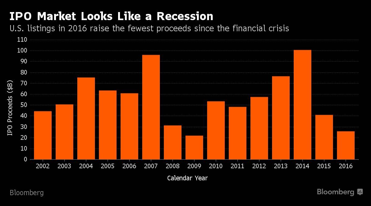据数据服务商 Dealogic提供的数据,2015 年是自 2009 年以来美国科技公司首次公开募股情况最糟糕的一年。仅有 28 家科技公司在美国上市,而去年和前年在美国上市的科技公司则分别有 62 家和 48 家。去年有 131 家“独角兽 ”公司选择了继续保持非上市状态。