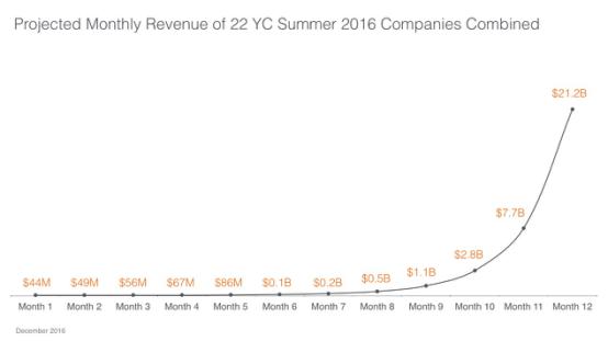 如果我们将公司的月增长率应用于其报告的收入,那么仅在一年后,这22家公司将总共产生大约210亿美元的月收入,或者说是每个公司约9.63亿美元的月收入。