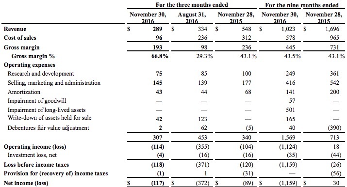 我们预计,基于非美国通用会计准则下,黑莓在 2017 财政年度能够实现每股盈利,高于之前盈亏平衡或亏损 0.05 美元的预期。我们连续三个季度提高每股收益预期,这反映出黑莓在向软件商业模式转型中取得了实效。