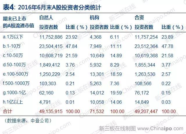 (1)2016年6月末A股投资者分类统计(数据来源:中登公司)