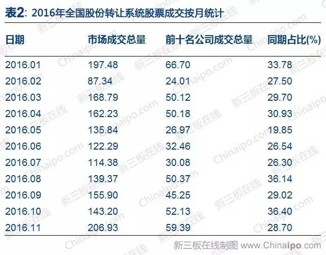 (2)2016年全国股份转让系统股票成交按月统计