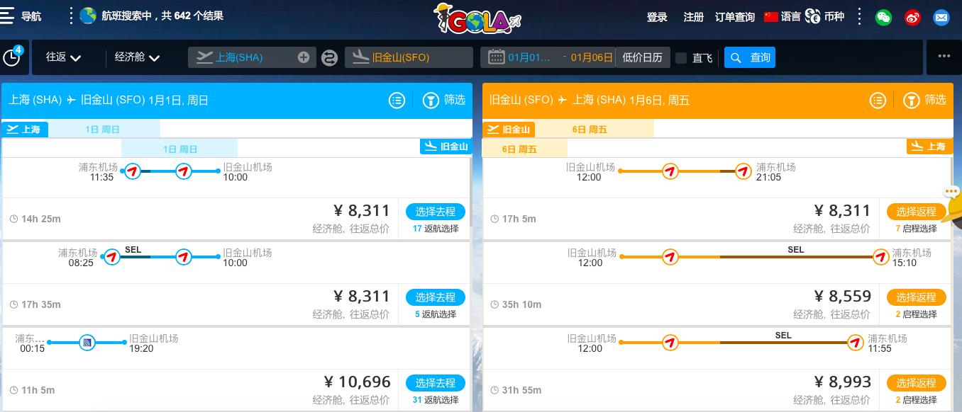 其次,航段组合。相对于国内机票来说,国外的机票和机票组合仍属于非标的产品。部分OTA在某些航段上有一定优势,但很难做到全覆盖。因此,iGola通过航段的不同配置方案,为用户提供差异化的机票产品。