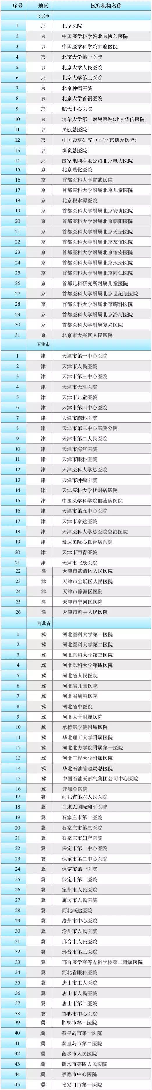 附102家医疗机构名单