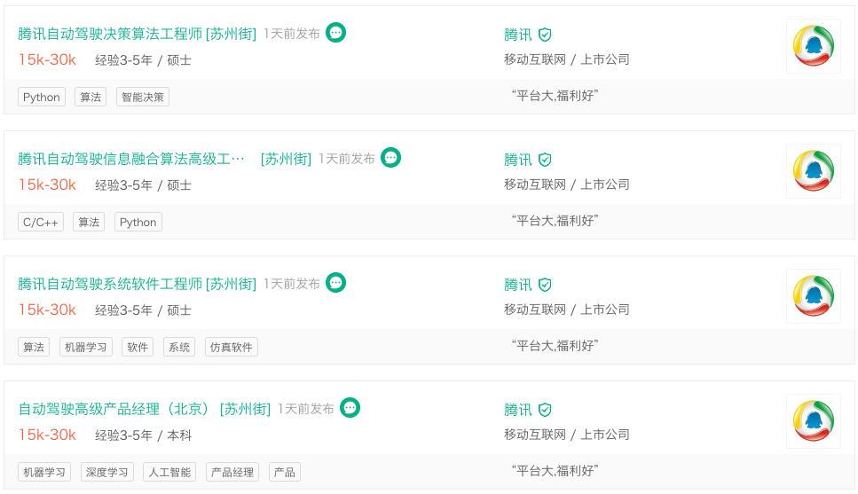 腾讯在拉勾上发布了自动驾驶职位的招聘,BAT的下一场战役要打响了?