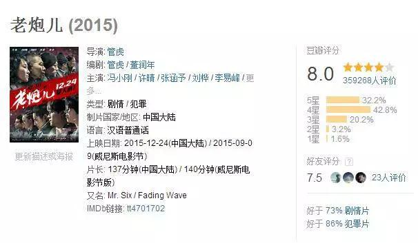 反观去年贺岁档的《老炮儿》、《寻龙诀》,豆瓣分别给出了8.0和7.6的评分,如果这批观众还是今年评论《摆渡人》《长城》的观众的话,那小娱只能说,片子有没有人看,最终还是要靠质量来说话的。