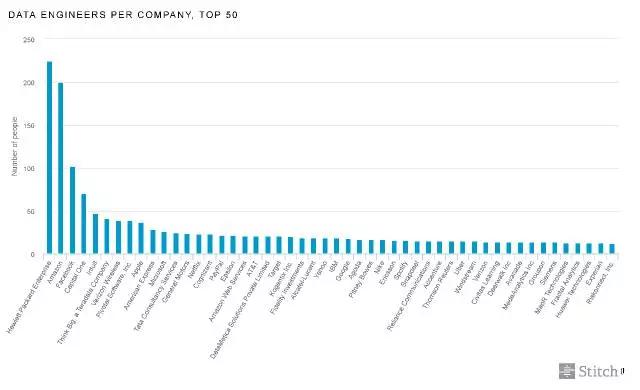 我们根据档案上的职业标题和头衔识别出数据工程师,这里只纳入了那些可确认公司的数据工程师档案。