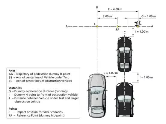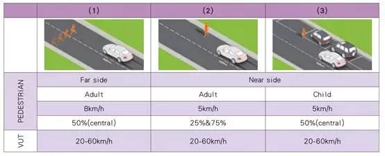 前述的三个场景与这些特殊的精准度要求,虽然无法涵盖所有外界的用车场景,但目的是为了确保所有的测试车在相对固定的测试条件中进行测试,以保证测试评分标准的一致性,Euro-NCAP 也已准备模拟其他可能的行人场景,在可预见的未来,Euro-NCAP 将会增加场景以期能模拟大部分状况。