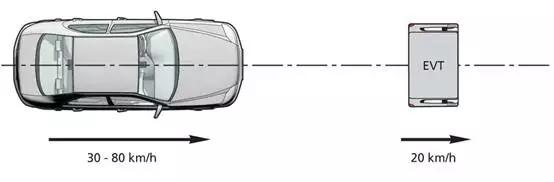 第二种是Car-to-Car Rear Moving (CCRm),这时前车速度稳定于时速20公里。