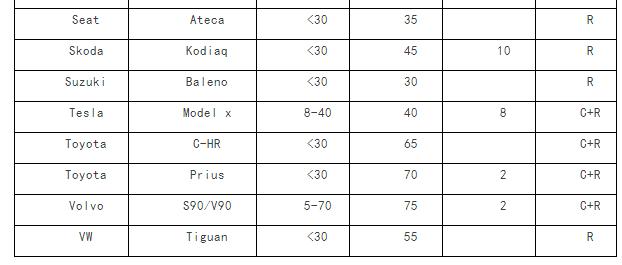 可见奔驰表现最好,其次是沃尔沃XC90,再次是丰田普锐斯。上表中C代表摄像头,R代表毫米波雷达,基本上都是两者配合使用,也有少数厂家只用毫米波雷达。