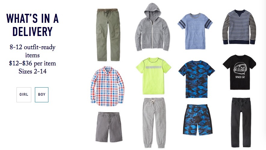 欧美的服装按月订购服务已经比较成熟,女装的领导者是 Stitch Fix,男装是 Trunk Club,去年八月成立的 Rockets of Awesome 想拿下童装市场的第一名。